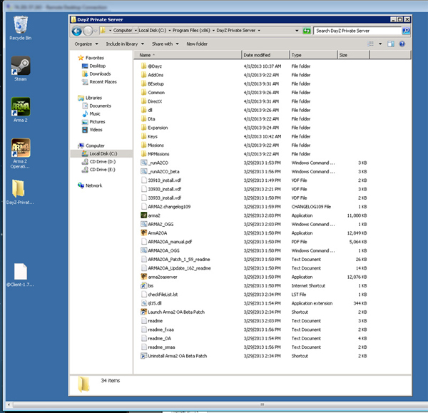 1. I installed Arma2 CO via steam (the the unmanged VDS) and combined the two directories in a directory named DayZ Private Server (located in the Programs x86 directory)