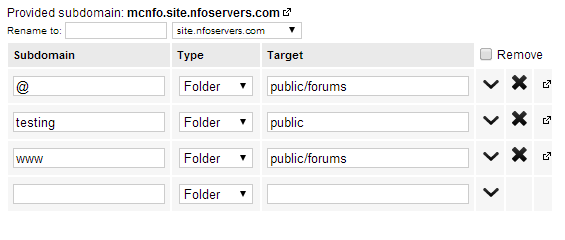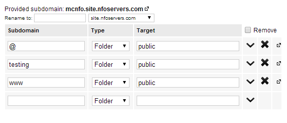 You should be greeted with something like this: To redirect my entire site into a new directory upon loading, I would change the "Target" box for the "@" symbol and the "www" text to a directory of my choosing.