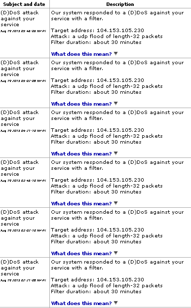 How can you tell him to block the whole 32-bytes packet size? If he does that, he'll have the same problem but 24/7. SAMP needs 32-bytes packets to work if you block that from all of your clients is worse than being attacked lol.Though, you can always block 32 length packets yourself via the "Firewall" tab in your control panel.