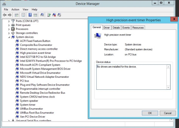 Look's like HPET is there but no drivers. Been doing some reading and everything I've read so far seem to lean toward using TSC over HPET anyway but personally I've never messed with either option.