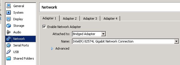 4.3) In the Oracle VirtualBox application go to the "Settings" for your virtual machine, navigate to "Network" and change Adapter 1's settings from "NAT" to "Bridged Adapter". Look in the attached files for a screenshot (network_bridged.jpg)