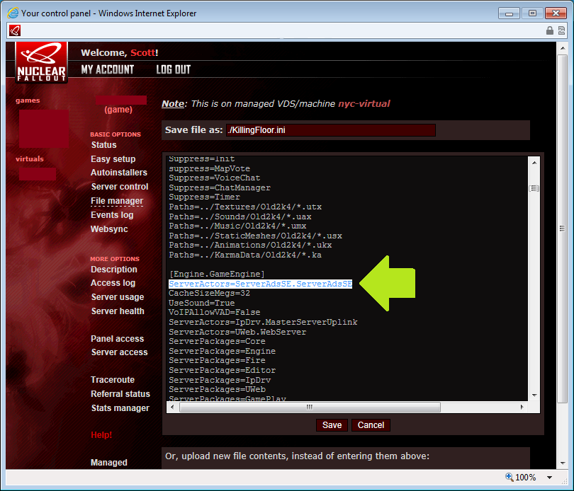 We are now going to edit the Killing Floor config file. It may be best to stop your server for this step.