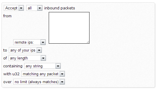 - Create an "accept" rule following this format. This rule will be looked at first by the firewall system.